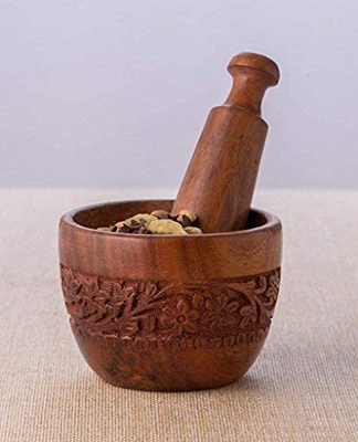 Ortus Arts Handmade Wooden Kitchen Okhli Masher Mortar Pestle with Intense Carving Kitchen Tool Set