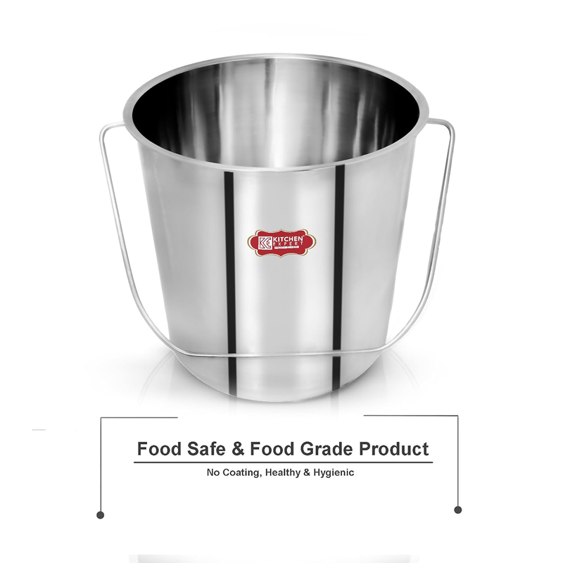 KITCHEN EXPERT, Stainless Steel Bucket | Leak Proof For Water Storage Balti Serving Bathroom Food