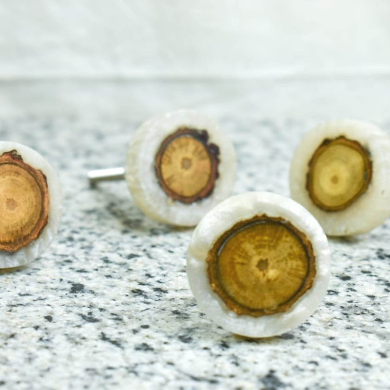 Wooden & Resin Round White Color Cabinet Drawer Pull /Drawer Knobs/Round Kitchen Cabinet Handle or Decorative Dresser Knob,Pull(SET OF 10)